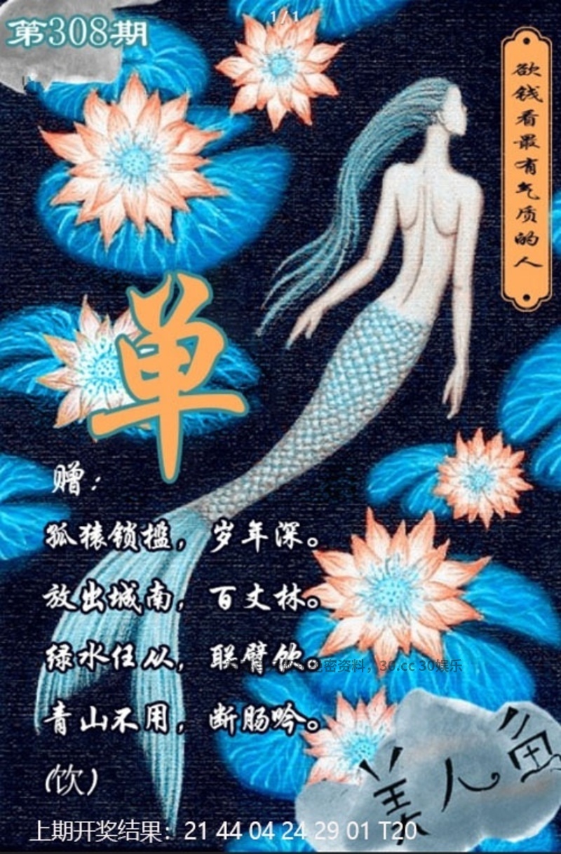 310期:美人鱼 解:更新中 综合:更新中 特码:更新中 |